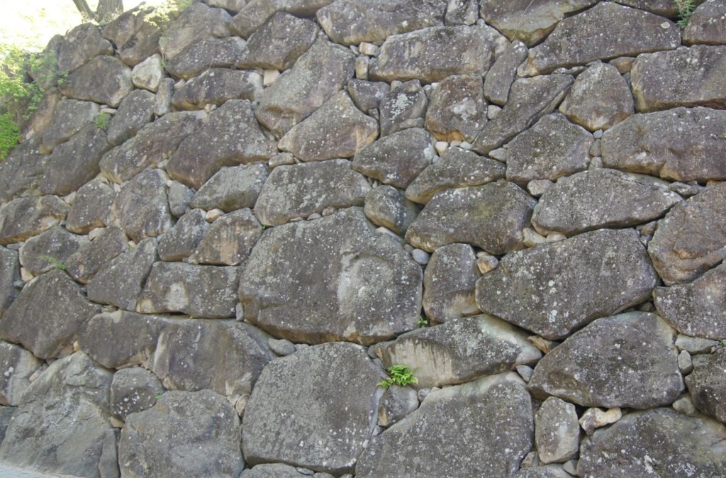二の丸跡の石積みです。随分急峻に積み上げています。場所により時期が異なるのか、採用している石材の差に興味しんしんです。時間と知識(これに掛けているからなー)が在れば石質の違いをチェックしてみたいものです。